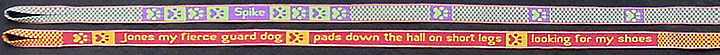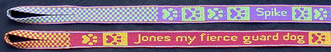 I had planned to weave their names and some paw prints, but I discovered dog haiku on the Internet in time to make up a haiku for Jones' leash: